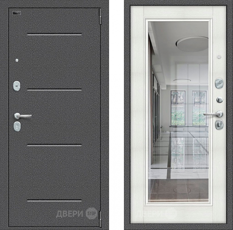 Входная металлическая Дверь Bravo Porta S-2 104/П61 с зеркалом Бьянко 860х2050 мм