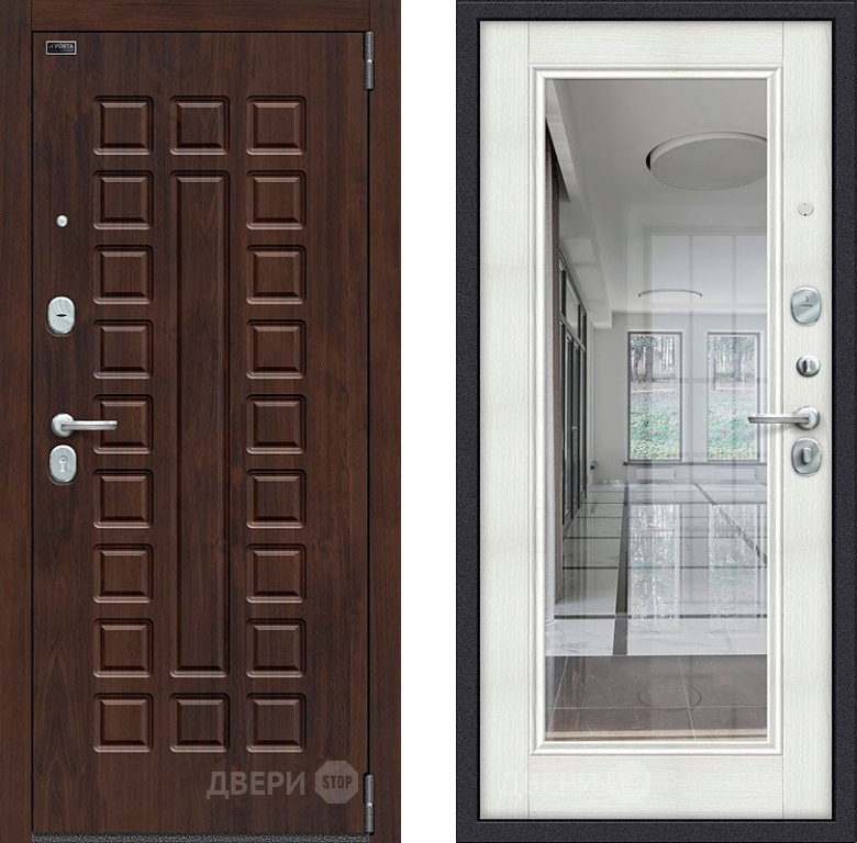 Входная металлическая Дверь Bravo Porta S-3 51/П61 с зеркалом Бьянко 860х2050 мм
