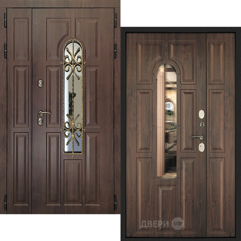 Входная металлическая Дверь Дверной Континент Лион Двустворчатая Темный орех 1100, 1200, 1300 * 2200мм