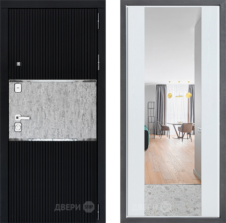 Входная Дверь Дверной континент ДК-13 ФЛЗ-1 Зеркало Белое дерево 960x2050 мм