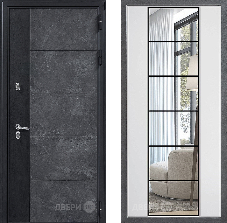 Входная Дверь Дверной континент ДК-15 Бетон ТЕРМО ФЛЗ-2 Зеркало Белый софт 860x2050 мм