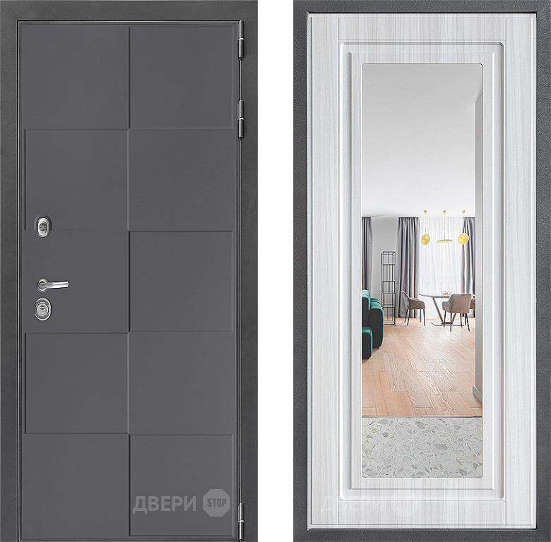 Входная Дверь Дверной континент ДК-3/606 ФЛЗ Зеркало Сандал белый 960x2050 мм