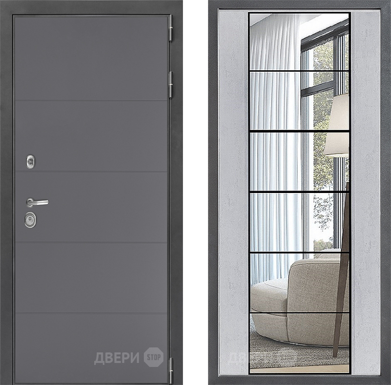 Входная Дверь Дверной континент ДК-3/649 ФЛЗ-2 Зеркало Бетон светлый 960x2050 мм