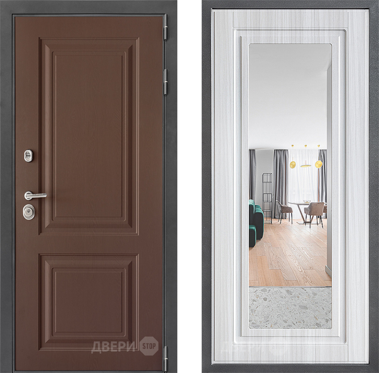 Входная Дверь Дверной континент ДК-3/729 ФЛЗ Зеркало Сандал белый 960x2050 мм