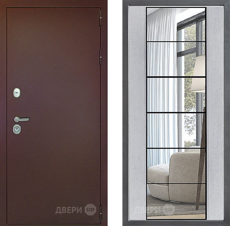 Входная Дверь Дверной континент Рубикон Медь Дизайн ФЛЗ-2 Зеркало Бетон светлый 960x2050 мм