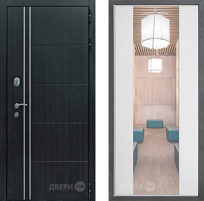 Входная Дверь Дверной континент Теплолюкс Дизайн ФЛЗ-1 Зеркало Белый софт 960x2050 мм