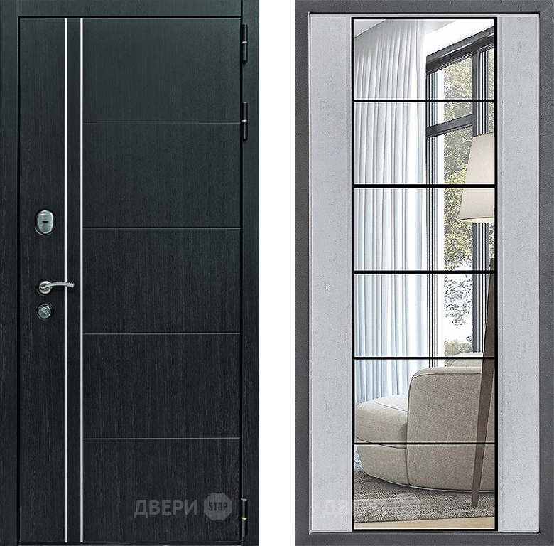 Входная Дверь Дверной континент Теплолюкс Дизайн ФЛЗ-2 Зеркало Бетон светлый 960x2050 мм