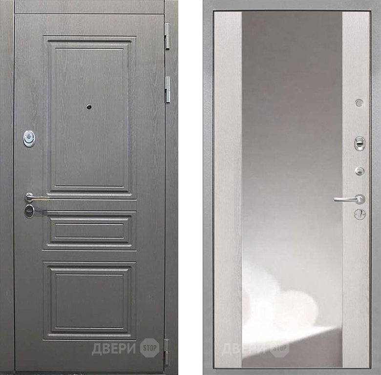Входная Дверь Интекрон (INTECRON) Брайтон Графит ФЛЗ-516 Зеркало Сосна белая 860x2050 мм