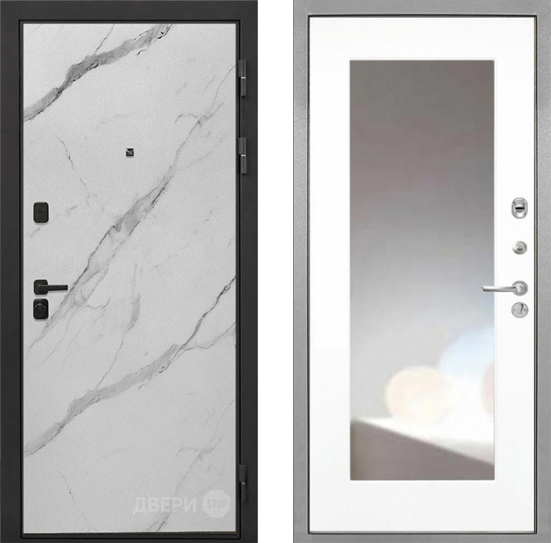 Входная Дверь Интекрон (INTECRON) Профит Black Мрамор Арктик ФЛЗ-120-М Зеркало Белый матовый 860x2050 мм