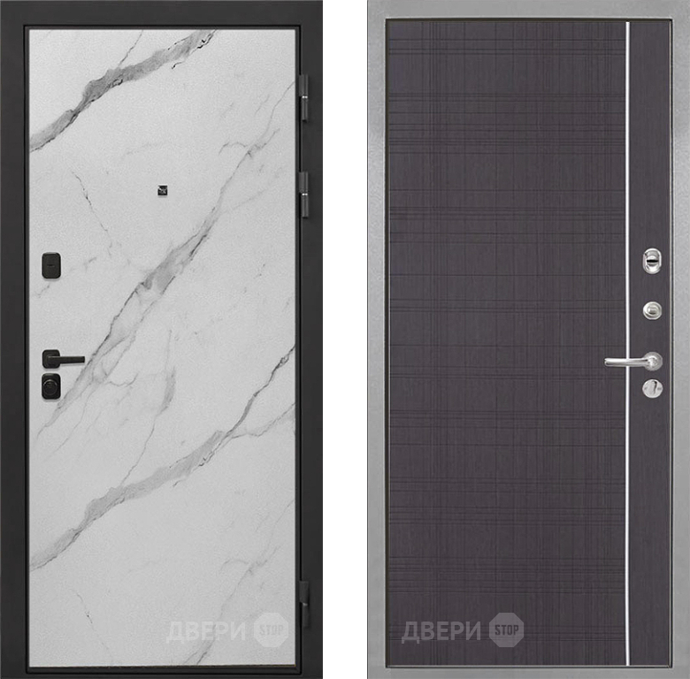 Входная Дверь Интекрон (INTECRON) Профит Black Мрамор Арктик В-07 с молдингом Венге 860x2050 мм