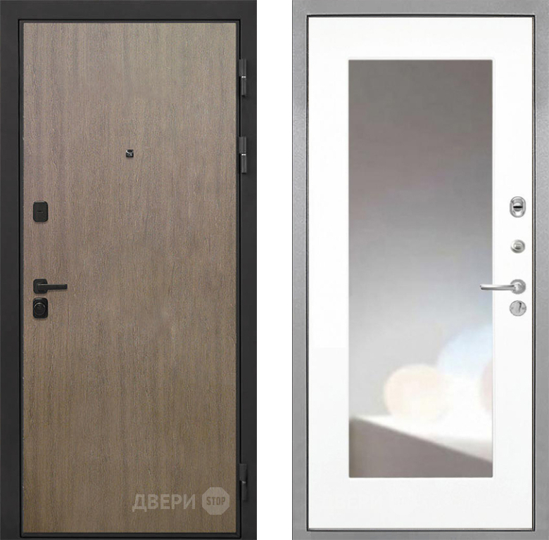 Входная Дверь Интекрон (INTECRON) Профит Black Венге Коричневый ФЛЗ-120-М Зеркало Белый матовый 960x2050 мм