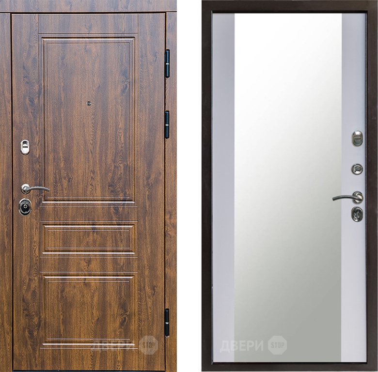 Входная Дверь Престиж Классика Дуб Зеркало Белый софт 860x2050 мм