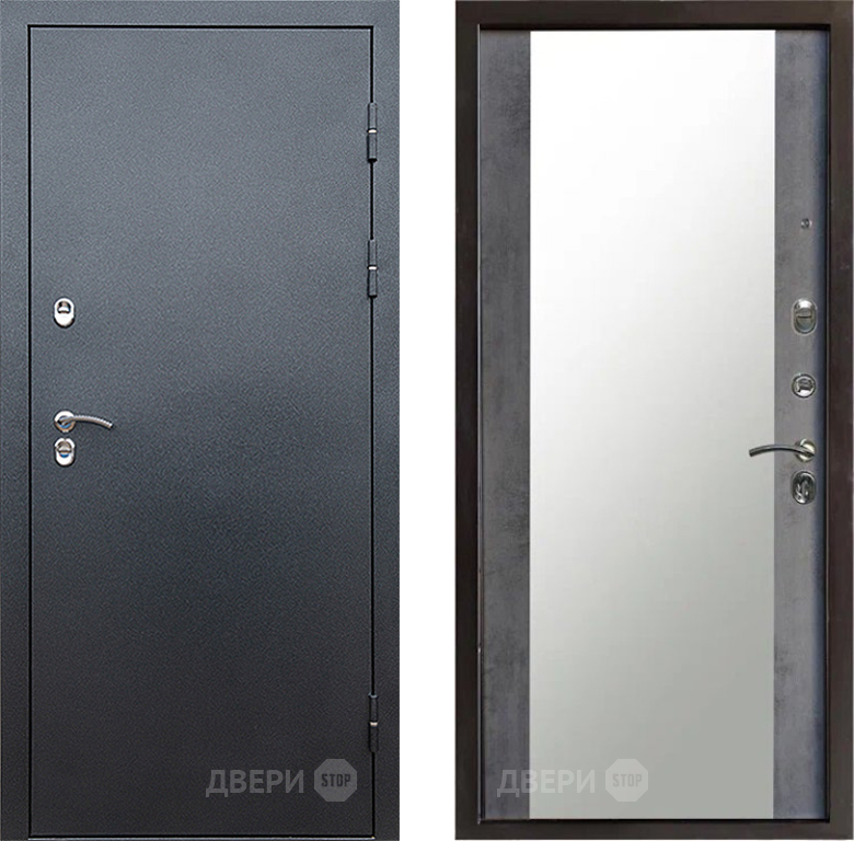 Входная Дверь Престиж TERMO с терморазрывом Снегирь Серебро Зеркало Бетон темный 860x2050 мм