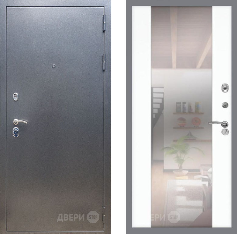 Входная Дверь Рекс (REX) 11 СБ-16 Зеркало Силк Сноу 860x2050 мм