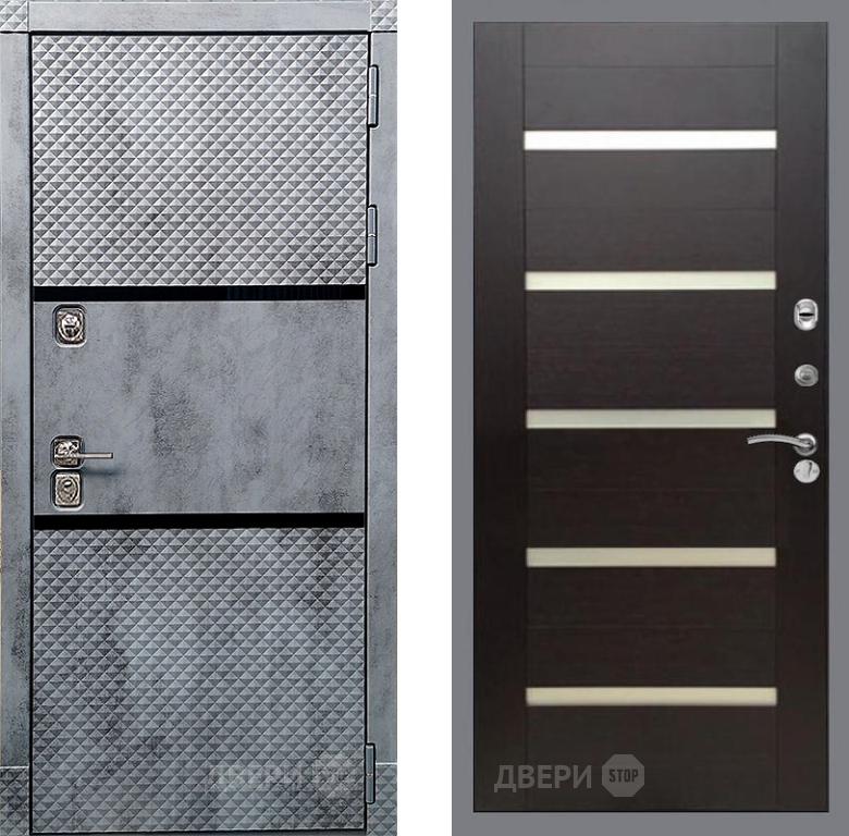 Входная Дверь Рекс (REX) 15 Бетон Темный СБ-14 стекло белое венге поперечный 860x2050 мм