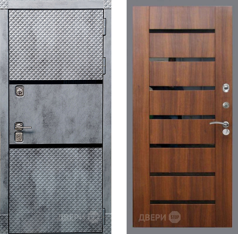Входная Дверь Рекс (REX) 15 Бетон Темный СБ-14 стекло черное Орех бренди 960x2050 мм
