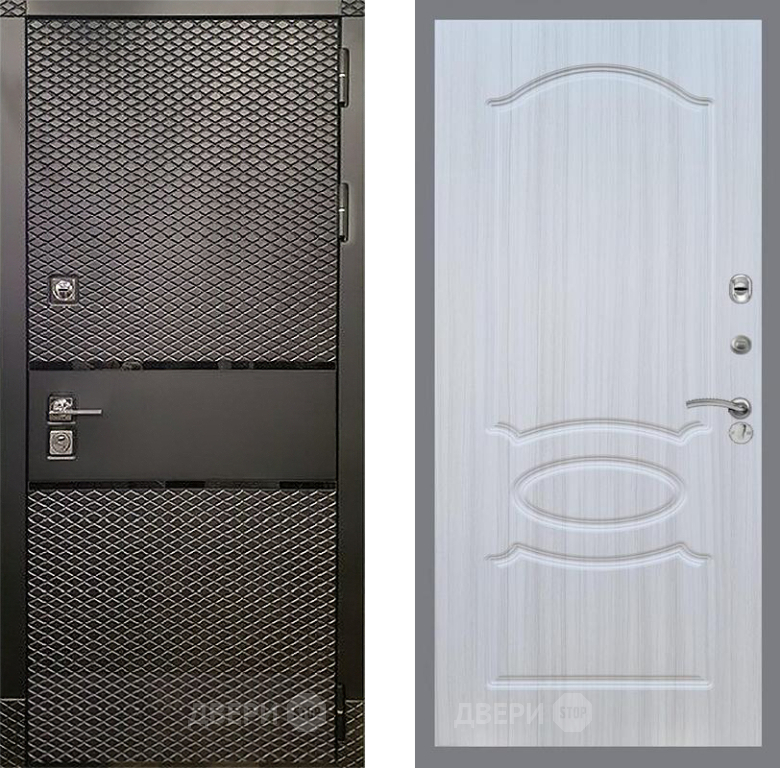 Входная Дверь Рекс (REX) 15 Черный Кварц FL-128 Сандал белый 960x2050 мм