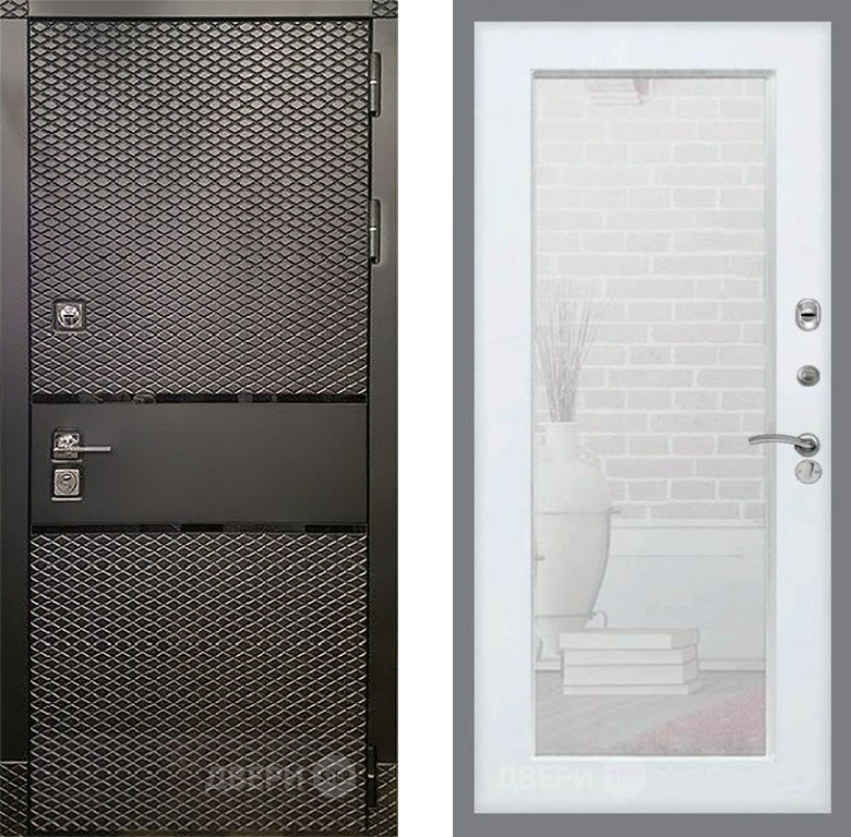 Входная Дверь Рекс (REX) 15 Черный Кварц Зеркало Пастораль Силк Сноу 960x2050 мм