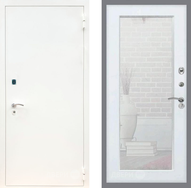 Входная Дверь Рекс (REX) 1А Белая шагрень Зеркало Пастораль Белый ясень 860x2050 мм