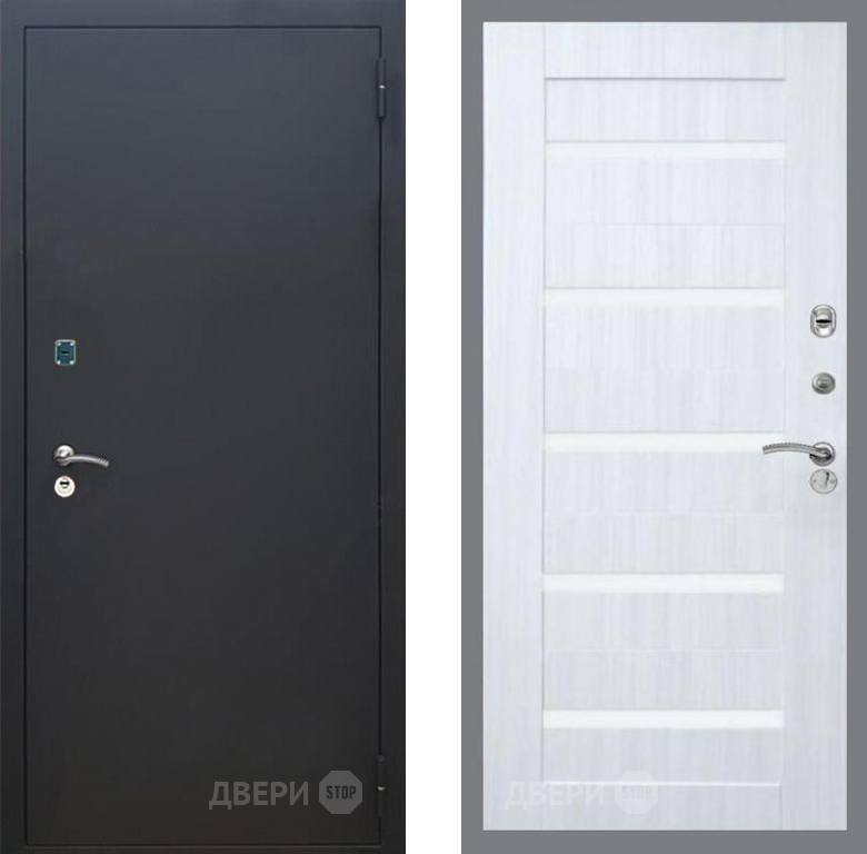 Входная Дверь Рекс (REX) 1A Черный Муар СБ-14 стекло белое Сандал белый 960x2050 мм