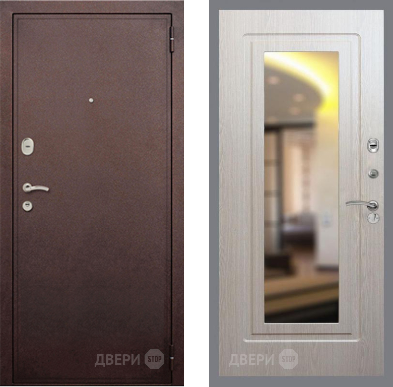 Входная Дверь Рекс (REX) 2 Медный Антик FLZ-120 Беленый дуб 860x2050 мм