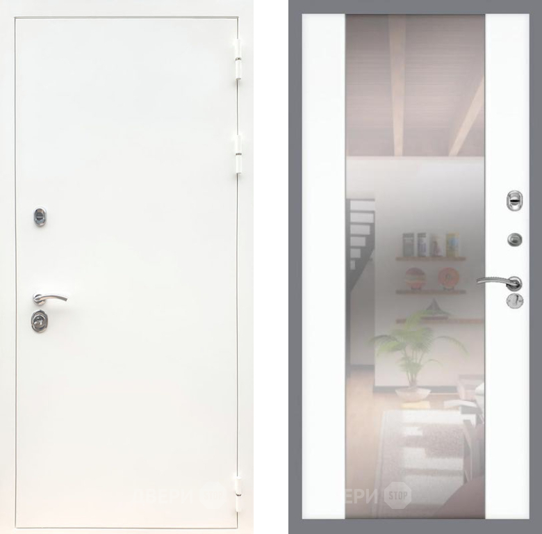 Входная Дверь Рекс (REX) 5 Белая Шагрень СБ-16 Зеркало Силк Сноу 860x2050 мм