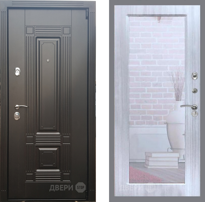 Входная Дверь Рекс (REX) 9 Зеркало Пастораль Сандал белый 960x2050 мм