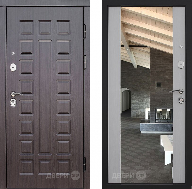 Входная металлическая Дверь S01 2К Зеркало Лиственница белая 860х2050 мм