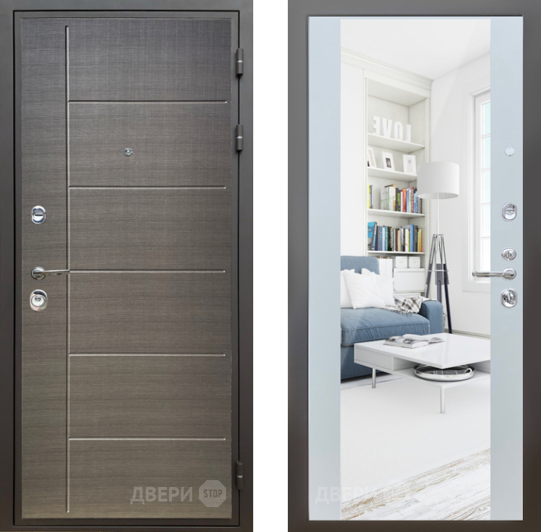 Входная Дверь Шелтер (SHELTER) Комфорт Лен сильвер 13 с зеркалом Белый матовый 960x2050 мм