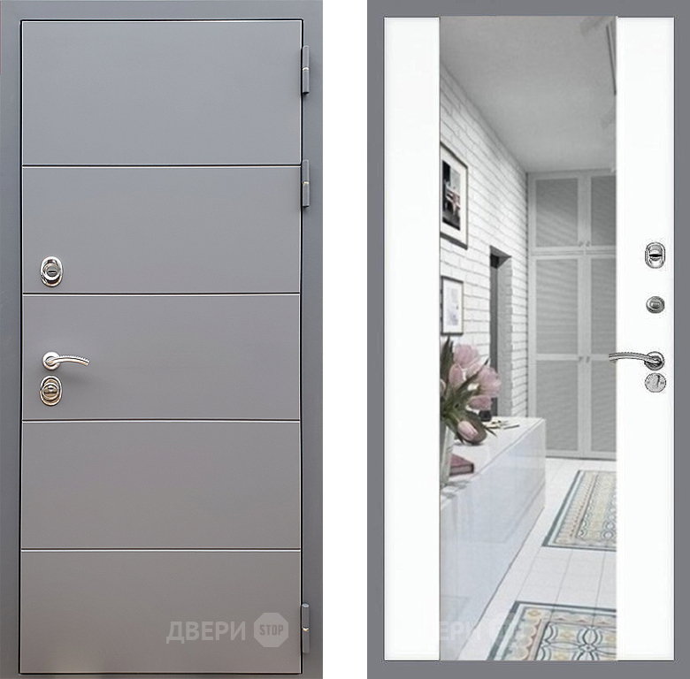 Входная Дверь Стоп АРТ ГРАФИТ Зеркало СБ-16 Силк Сноу 960x2050 мм