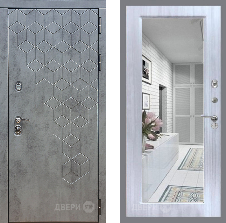 Входная Дверь Стоп БЕТОН Зеркало Сандал белый 860x2050 мм