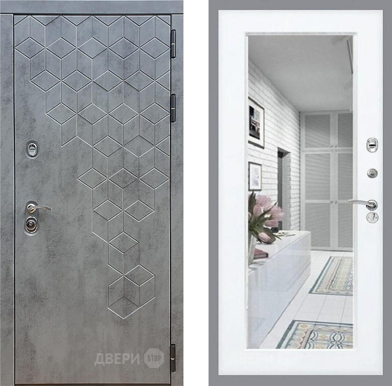Входная Дверь Стоп БЕТОН Зеркало Силк Сноу 960x2050 мм