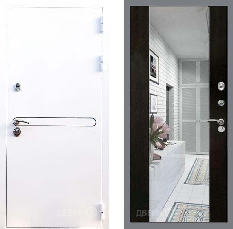 Входная Дверь Стоп Лайн Вайт Зеркало СБ-16 Венге 960x2050 мм