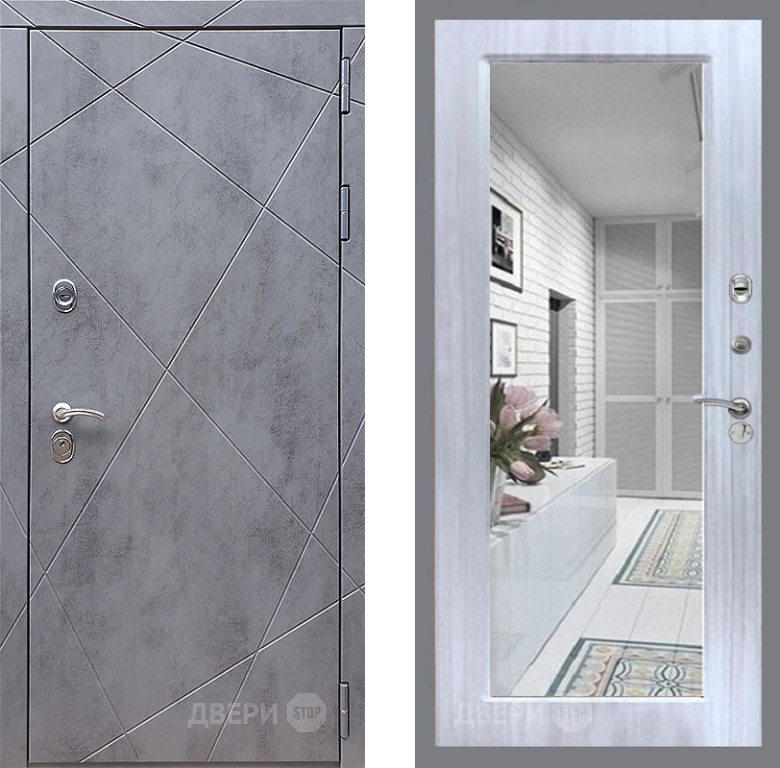 Входная Дверь Стоп Лучи Зеркало Сандал белый 860x2050 мм