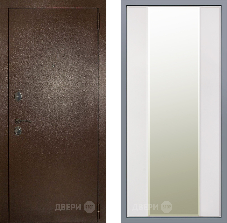 Входная Дверь Заводские двери Эталон 3к антик медь Зеркало Макси Белый матовый 960x2050 мм