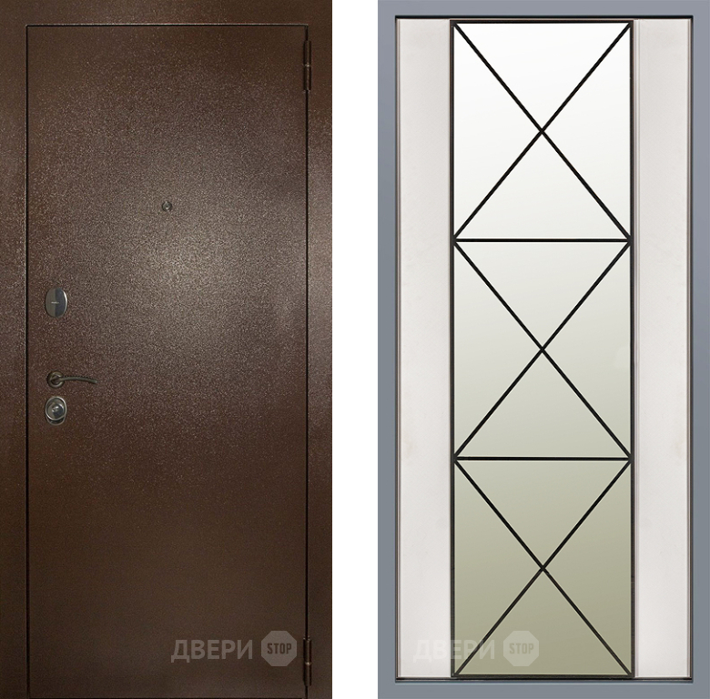 Входная Дверь Заводские двери Эталон 3к антик медь Зеркало Перфекто Структурное дерево 960x2050 мм