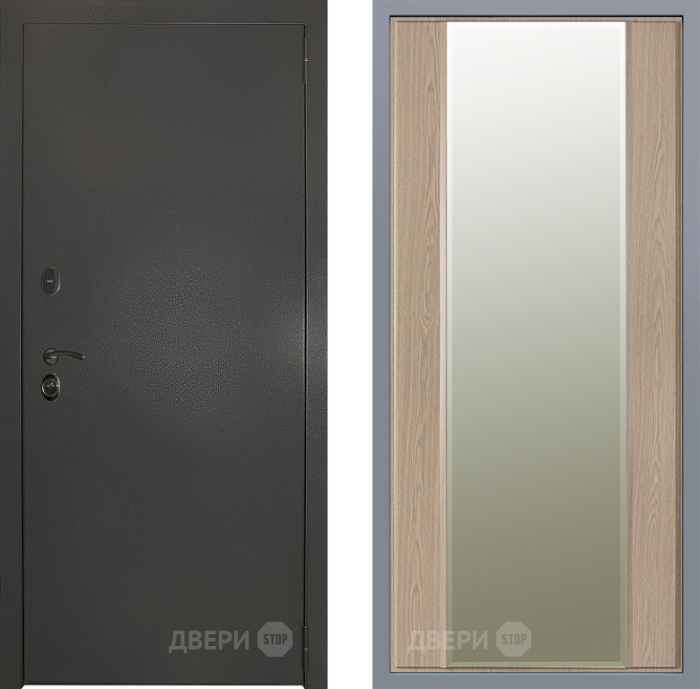 Входная Дверь Заводские двери Эталон 3к антик серебро Зеркало Макси Беленый дуб 960x2050 мм