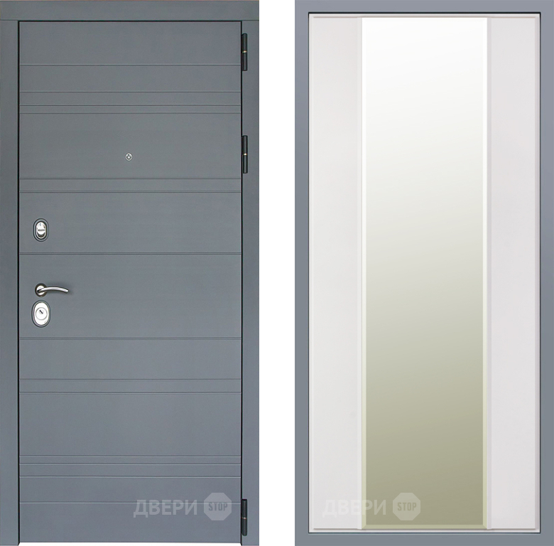 Входная Дверь Заводские двери Лира Софт графит Зеркало Макси Белый матовый 960x2050 мм
